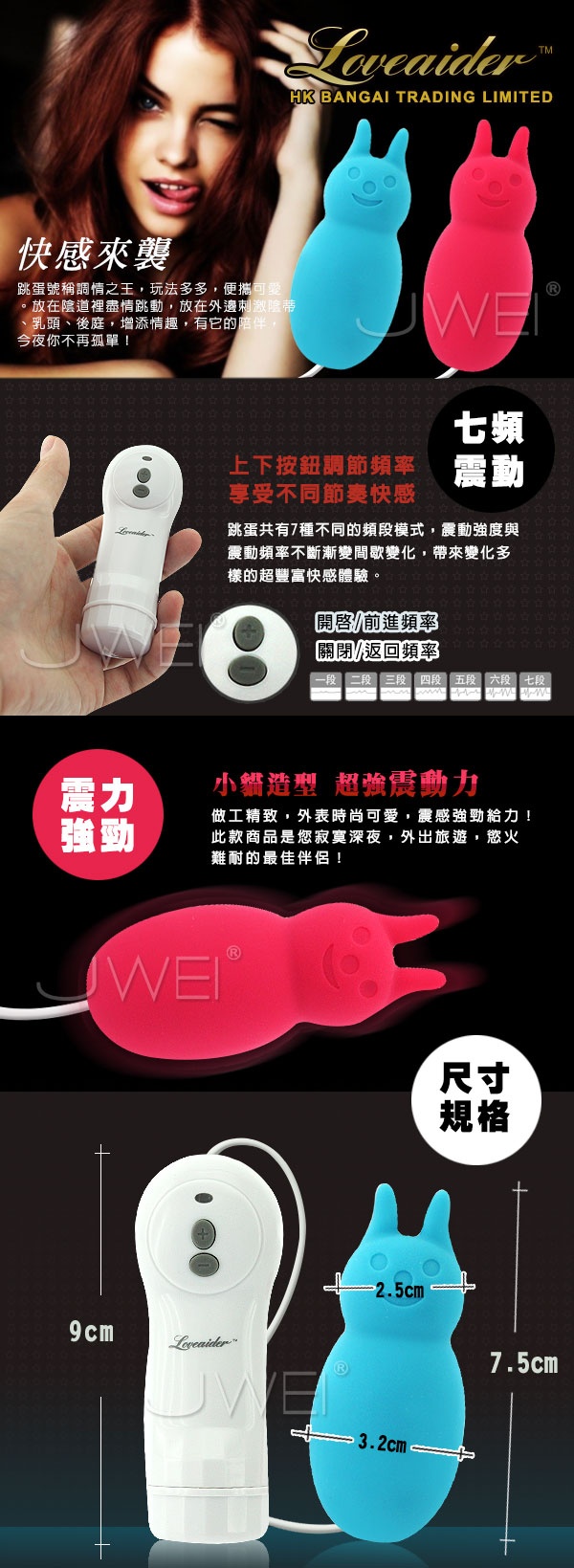 香港邦愛Loveaider*Mini Cat 7段變頻微笑貓軟膠跳蛋(藍)