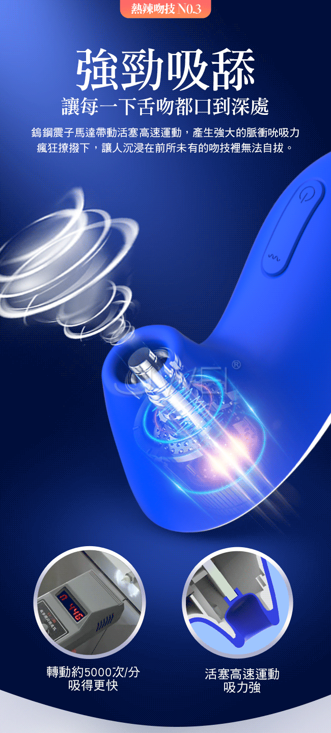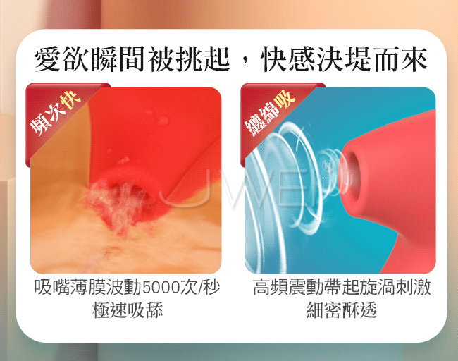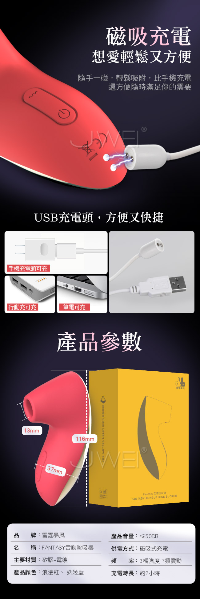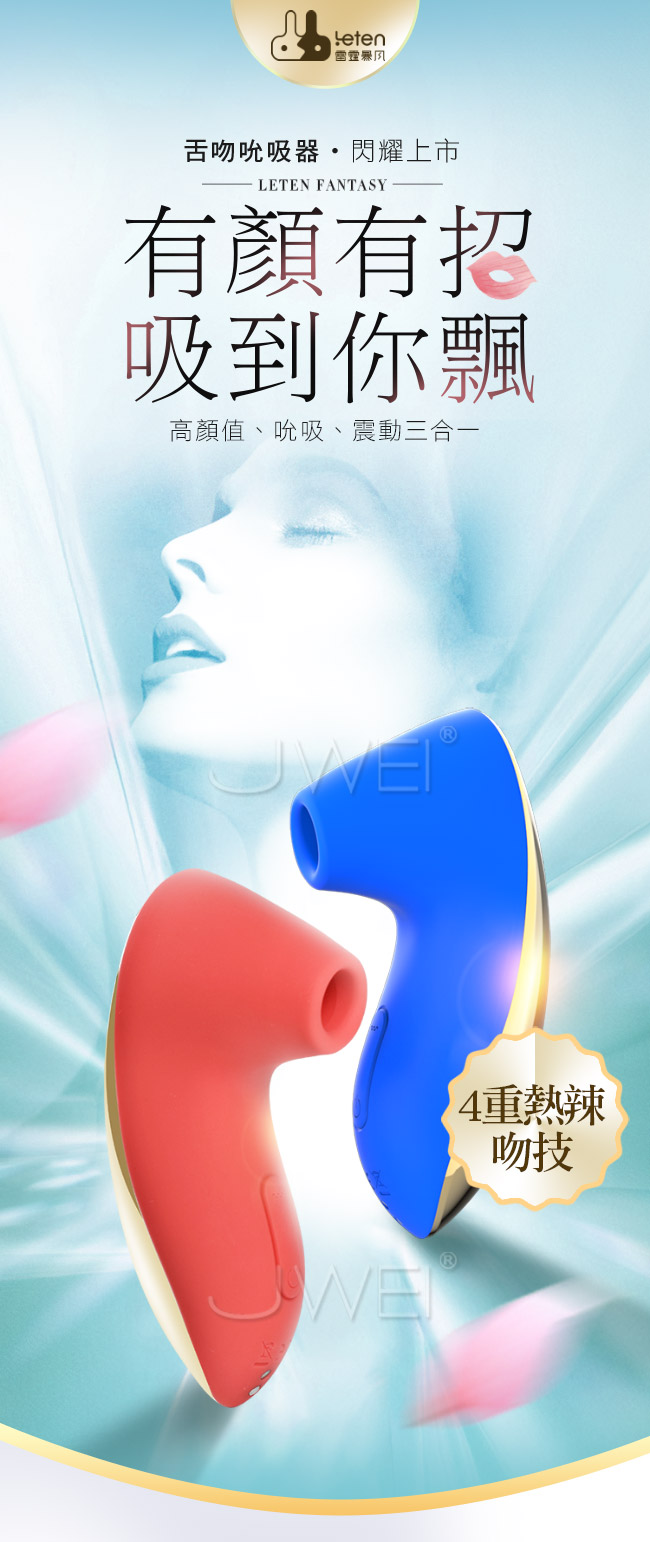 Leten.舌吻 3檔7頻防水吸吮器-玫紅