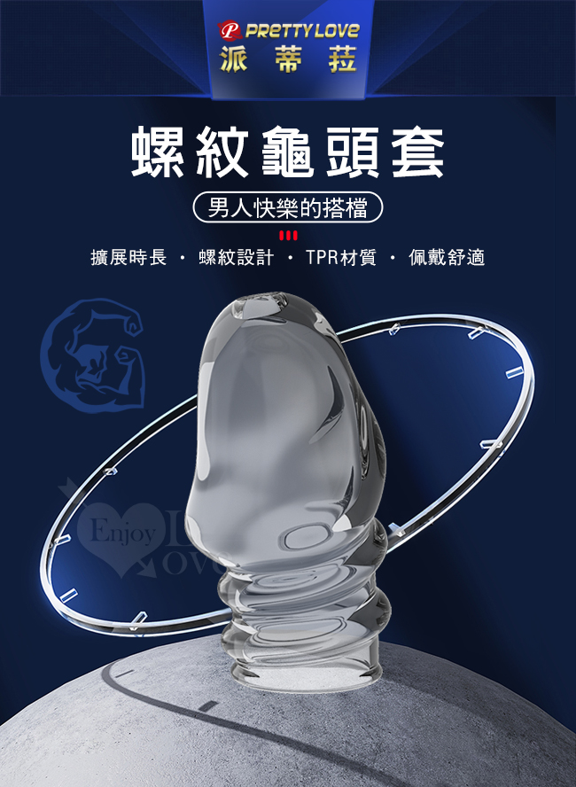 ►您現在的位置:首頁>PRETTY LOVE 派蒂菈 ‧ JEREMY 傑里米 螺紋武裝強化龜頭套 - 頭部出精口設計﹝透明白﹞
