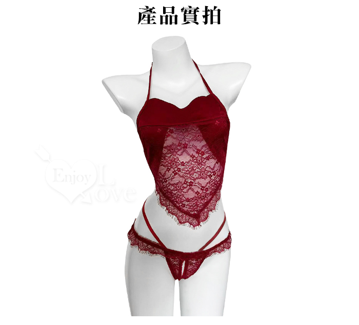 情趣肚兜!睫毛蕾絲透視美背細帶性感開襠T字褲三件組﹝紅﹞