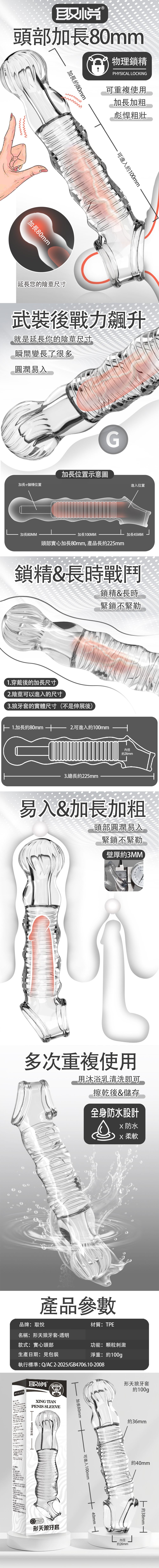 取悅 形天狼加長狼牙套-透明