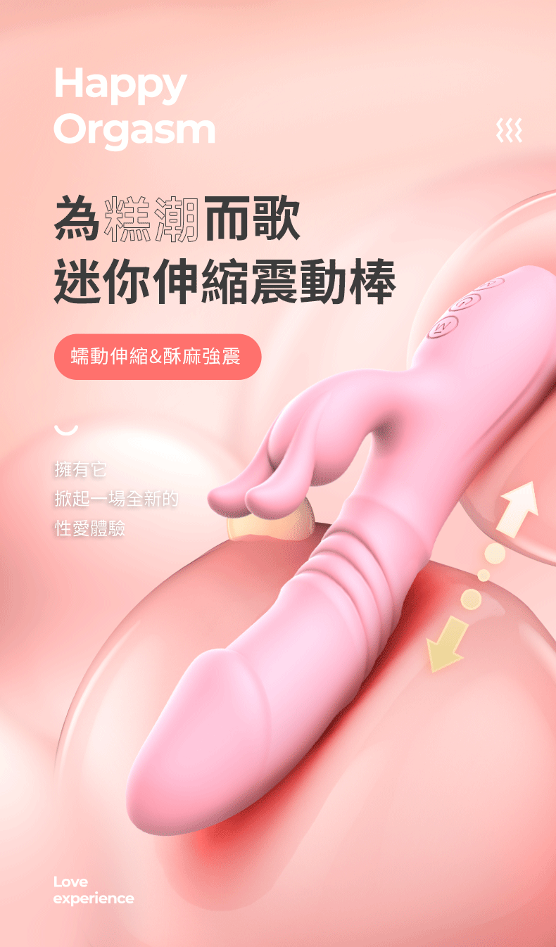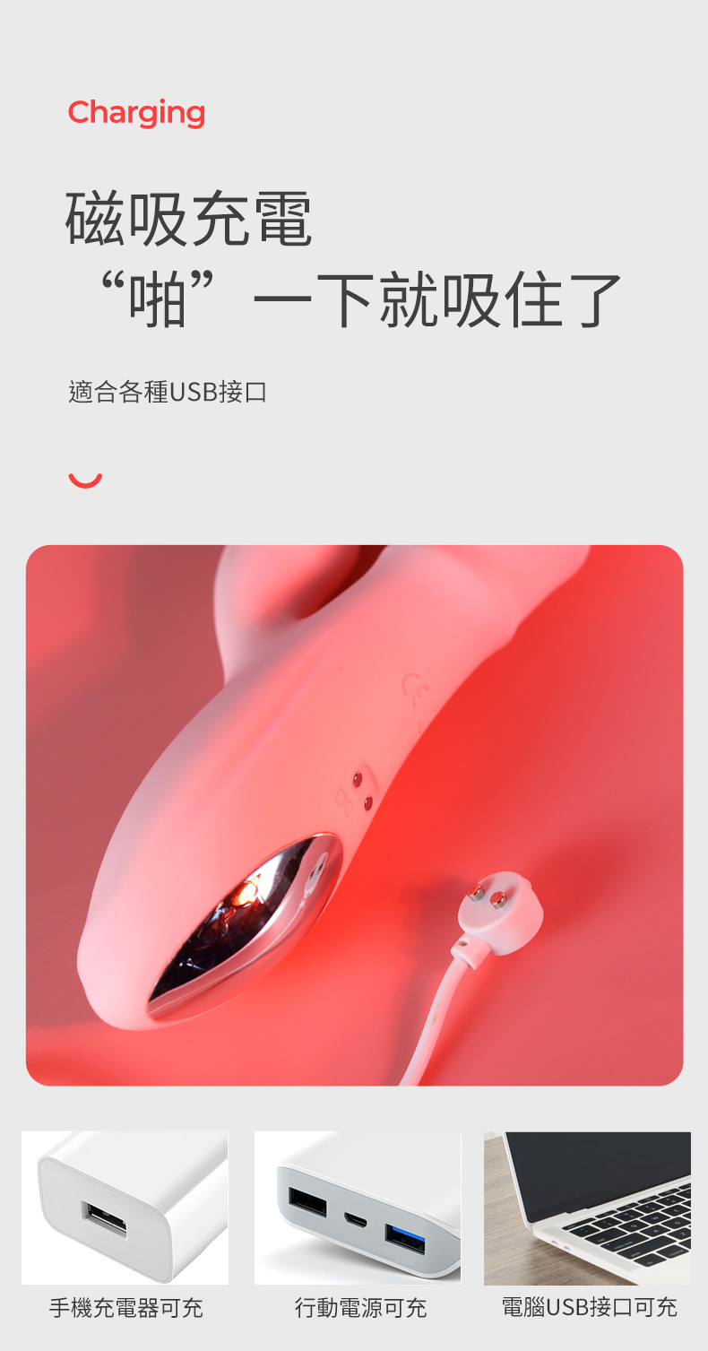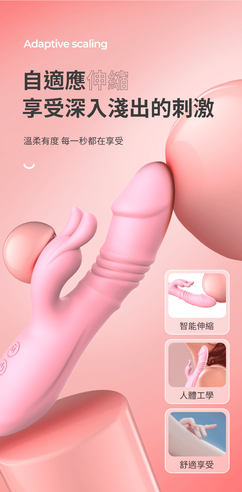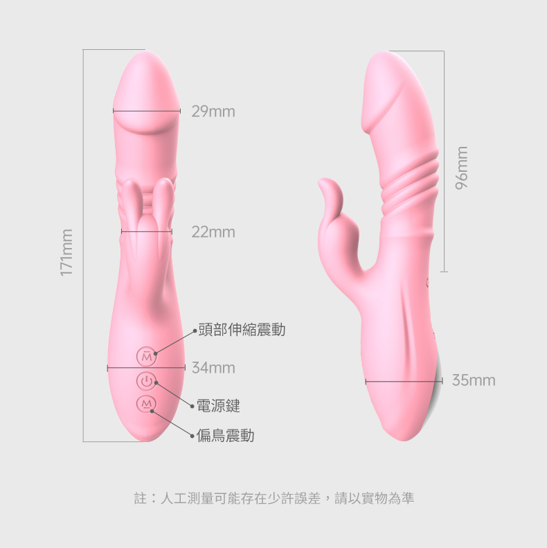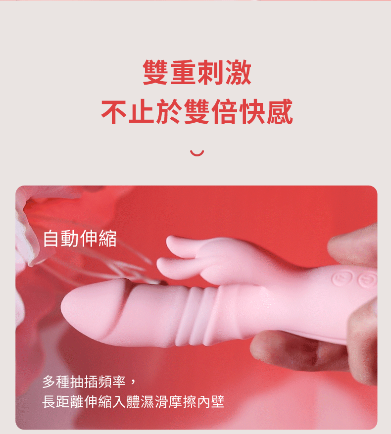 澀妞妞.迷你矽膠磁吸充電伸縮+震動兔雙擊按摩棒(嫩粉)