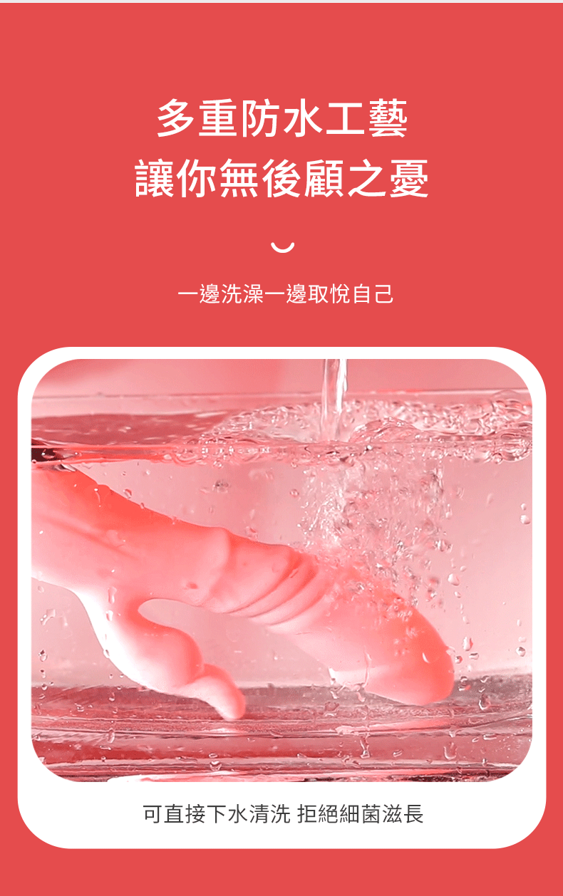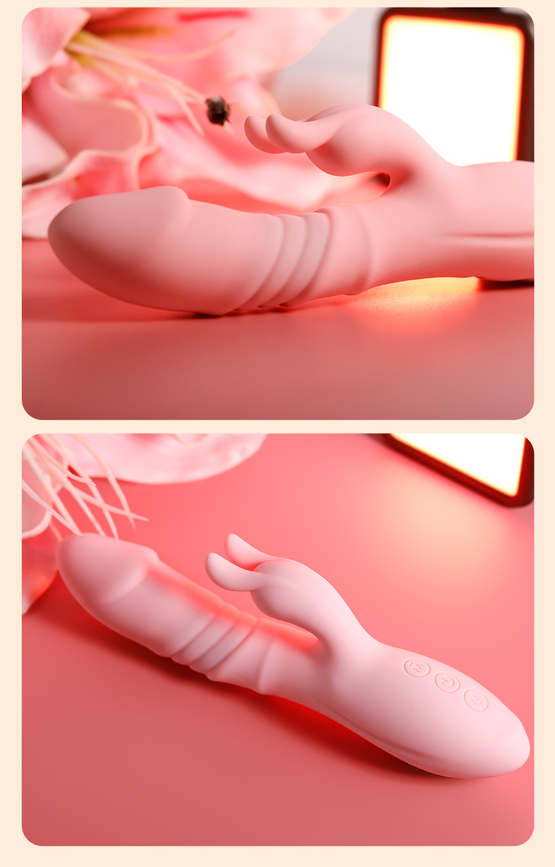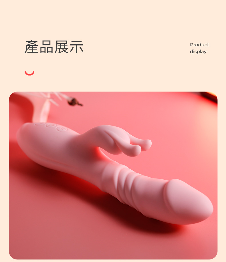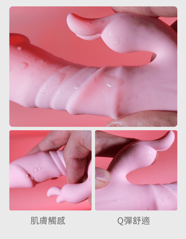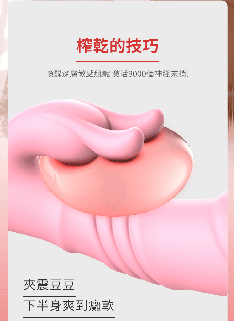 澀妞妞.迷你矽膠磁吸充電伸縮+震動兔雙擊按摩棒(嫩粉)