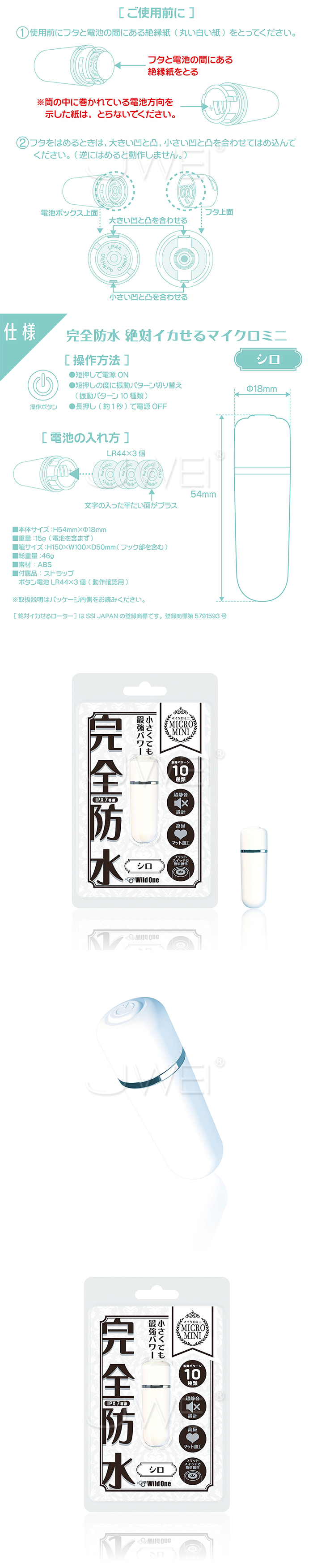 ►您現在的位置:首頁>日本原裝進口Wild One.MICRO MINI 完全防水 絶対イカせる 10段強震迷你跳蛋【白色】