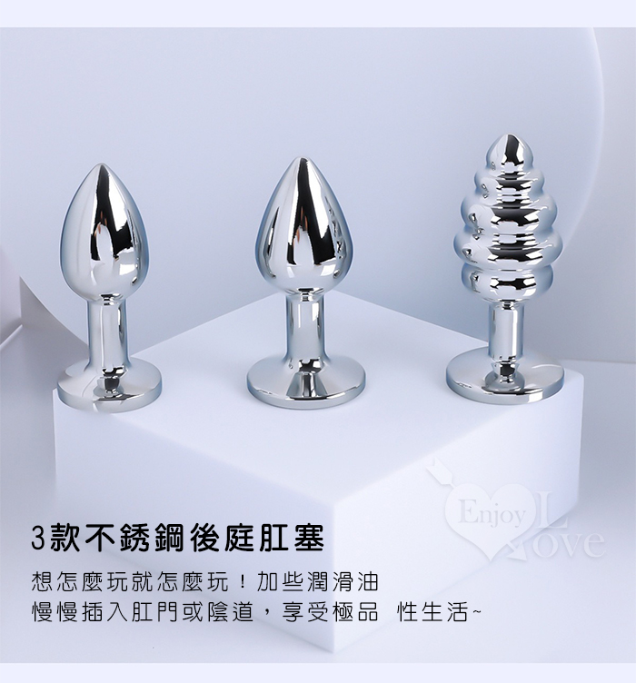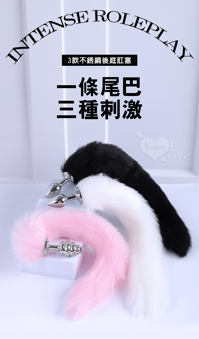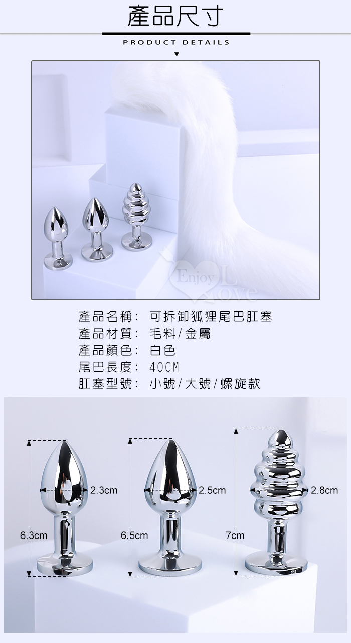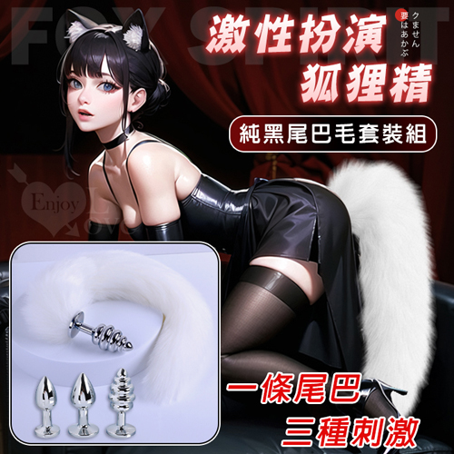 | 激性扮演狐狸精 ‧ 3款不銹鋼後庭肛塞+純白尾巴毛套裝組﹝可組裝拆卸﹞
