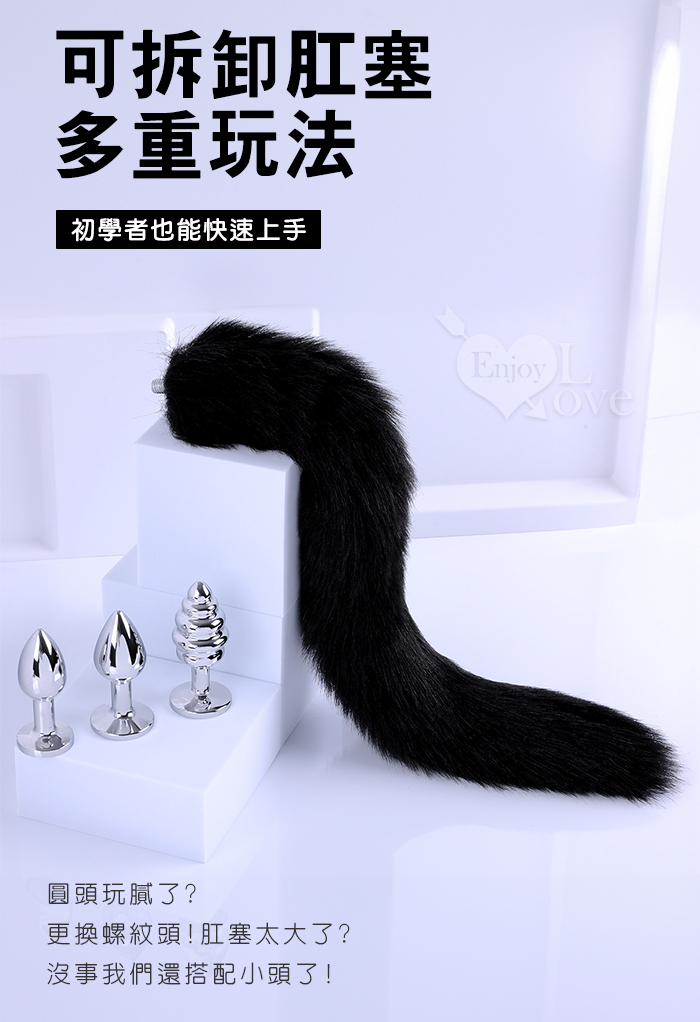 | 激性扮演狐狸精 ‧ 3款不銹鋼後庭肛塞+純黑尾巴毛套裝組﹝可組裝拆卸﹞