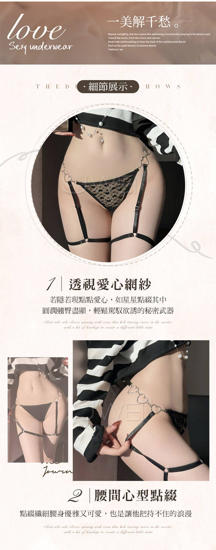 首頁>極夜誘惑.愛心鏈條綴腰吊帶低腰開襠褲【黑】