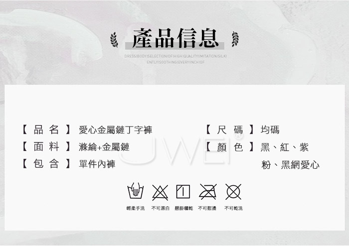 ■內容物:內褲*1 ■適穿尺寸:FREESIZE ■彈性:彈 ■未撐開平量尺寸正負誤差1~2cm,1吋=2.54cm ■注意事項:基於保障消費者個人衛生,此貼身衣物恕不接受退換貨。 (如為商品本身暇疵,接受七日內換貨,請勿試穿,謝謝您)
