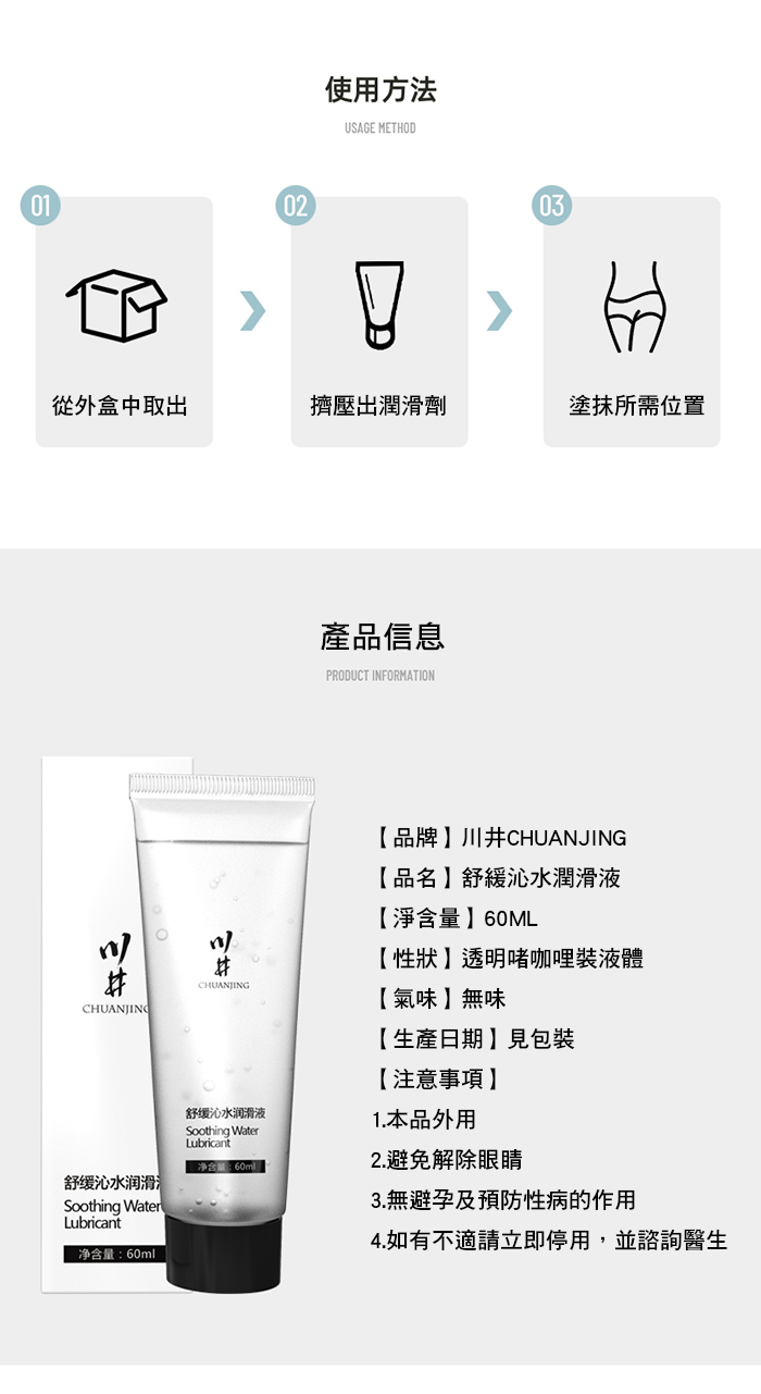 川井.舒緩沁水玻尿酸水溶性清爽潤滑液【60ml】