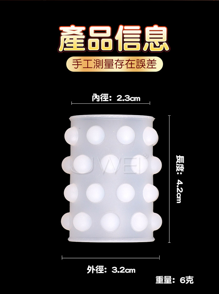 鎖住時間+強化精關+提升摩擦,可增進夫妻、情侶間性福 持續力大大加強,鎖住時間,讓快感來得強烈,顆粒精準按摩,波浪持續不斷 ■材質:TPE ■功能:顆粒刺激,鎖精延時 ■內容:單入裝
