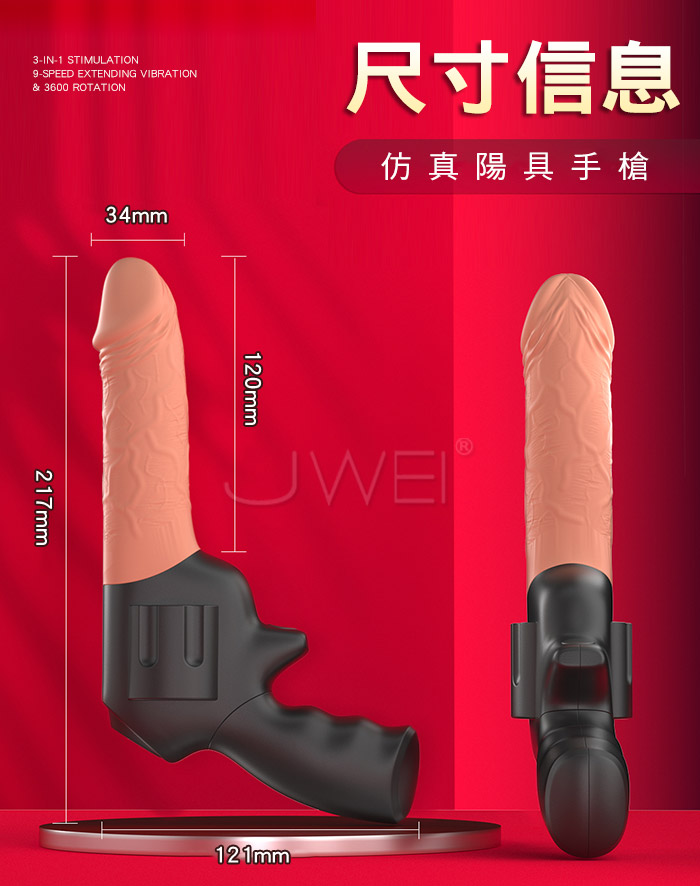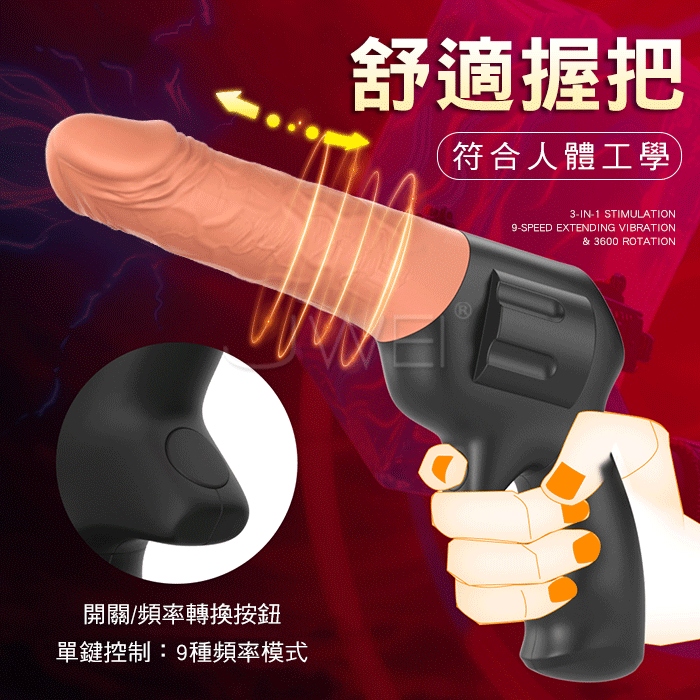| 仿真手槍.9種頻率 伸縮+轉珠+震動 三合一逼真陽具按摩棒