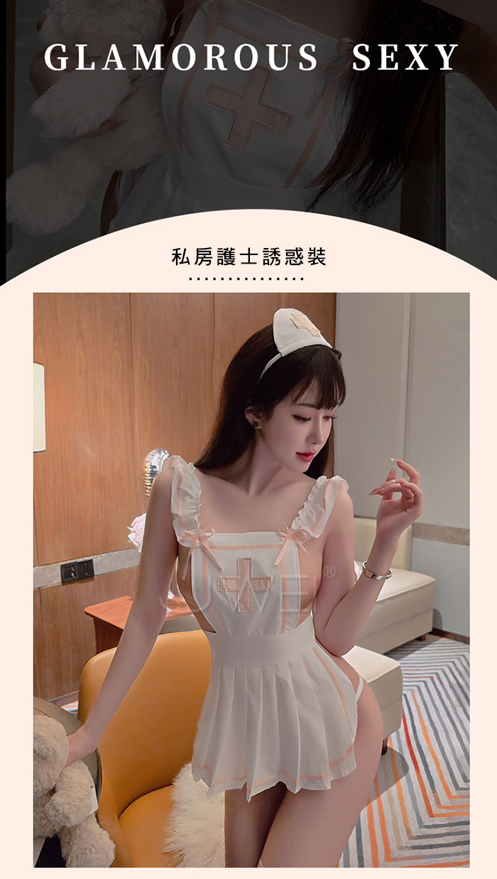 | 誘慾診療.荷葉花邊吊帶圍裙綁帶美背私房護士誘惑套裝【髪箍+圍裙+T褲】