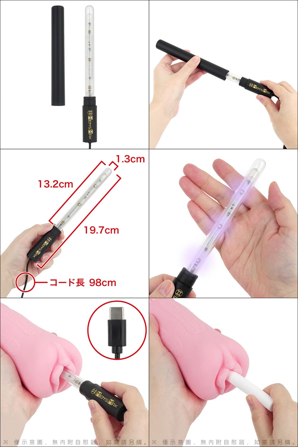 尺寸:長19.7x直徑1.3x直徑1.3cm,可深入長約13.2cm、USB線長約98cm