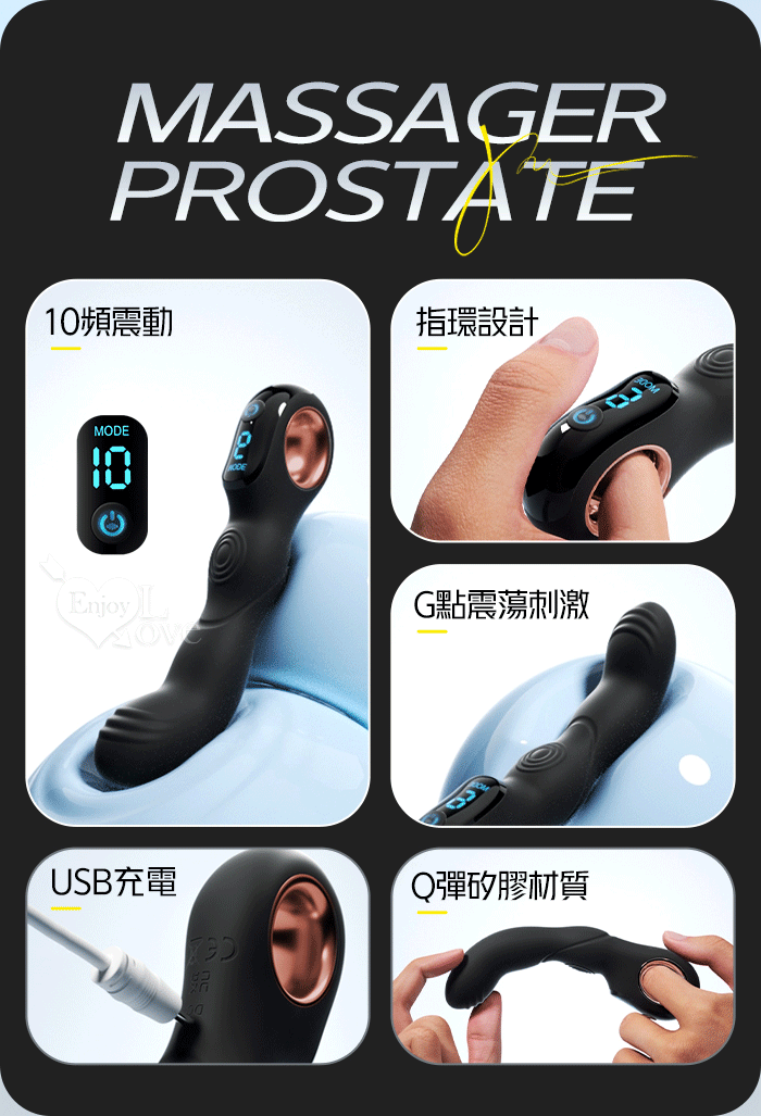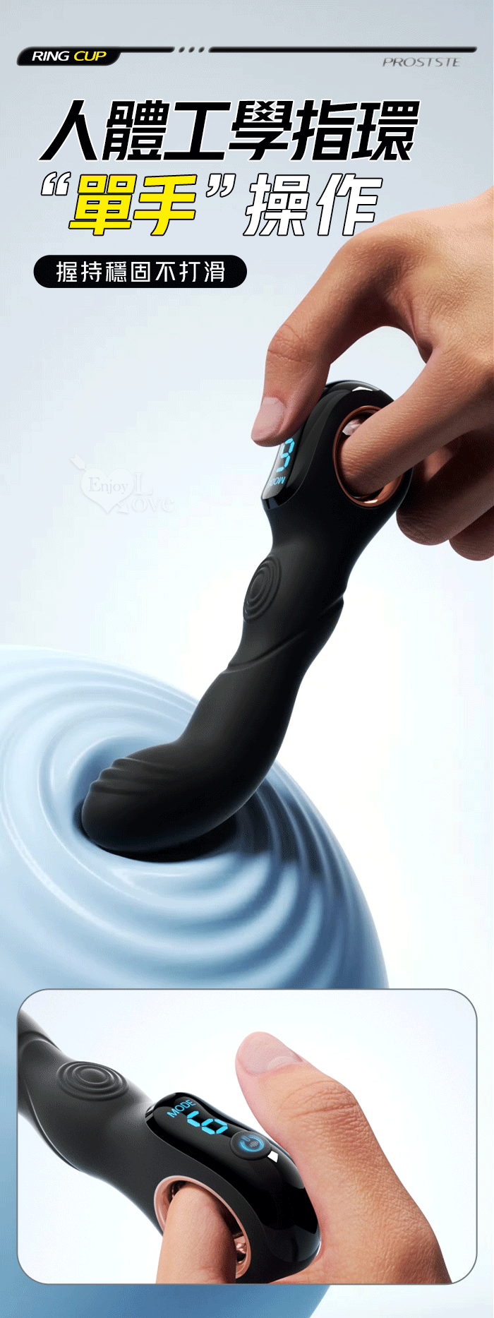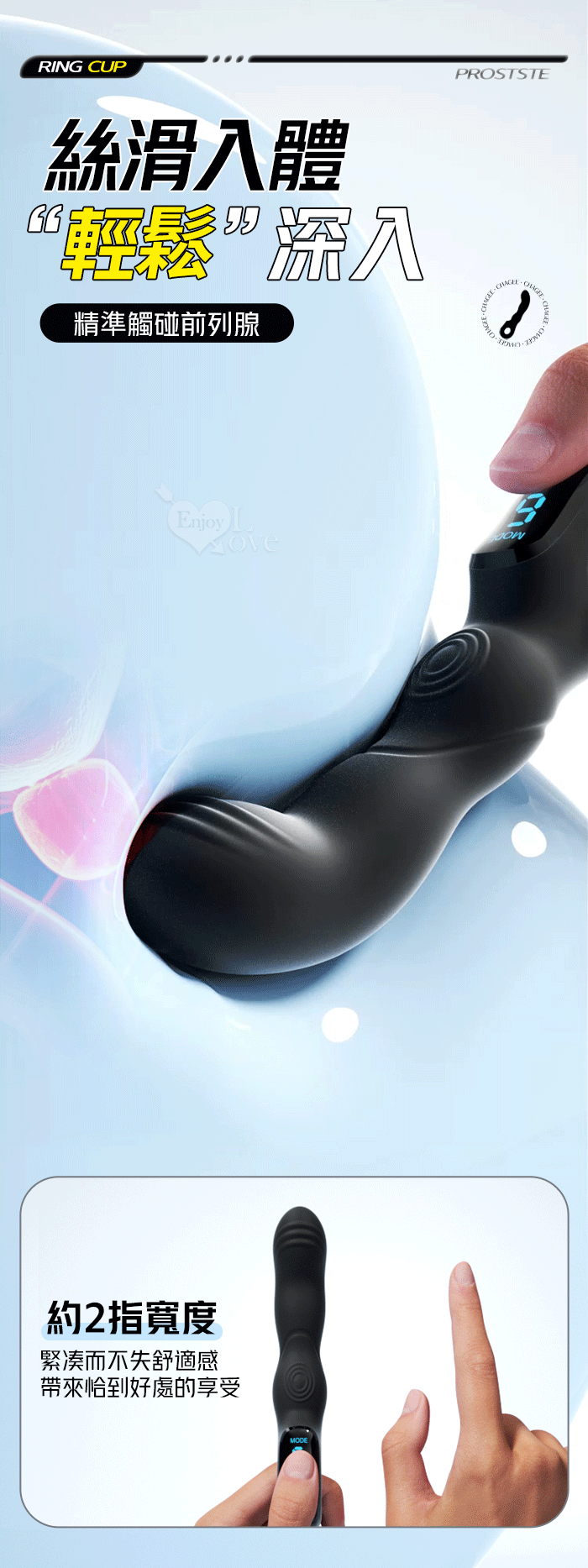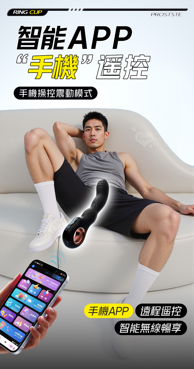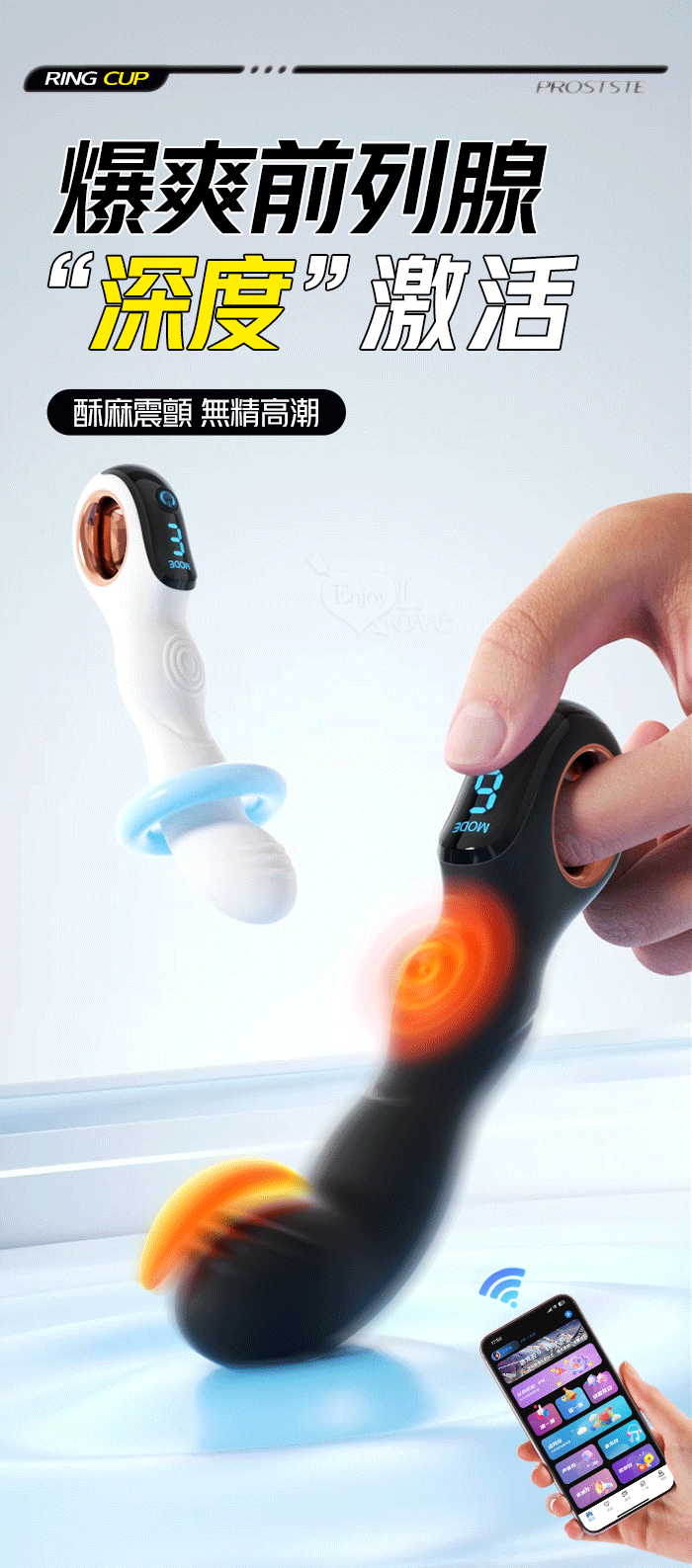 ROSELEX 指環前列腺~深度激活後庭按摩器-液晶視屏顯示10頻震動/可手機APP遙控﹝具兩種操控模式﹞白