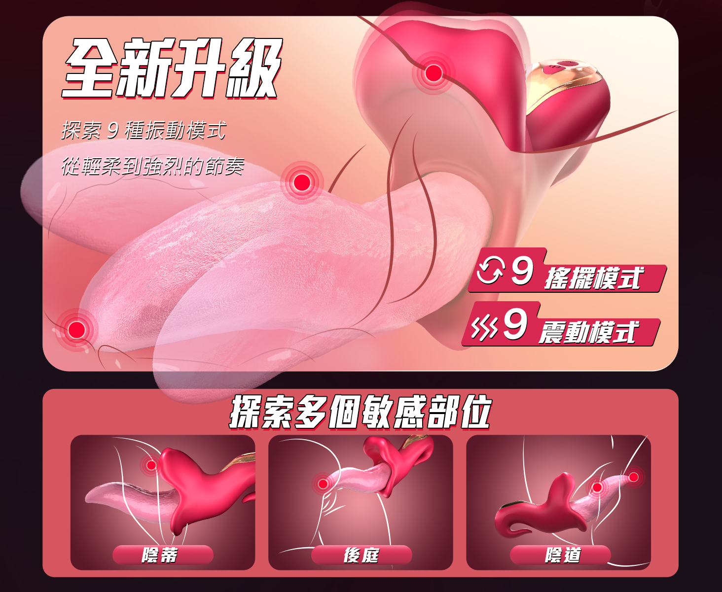 .規格:9段震動、9頻搖擺。