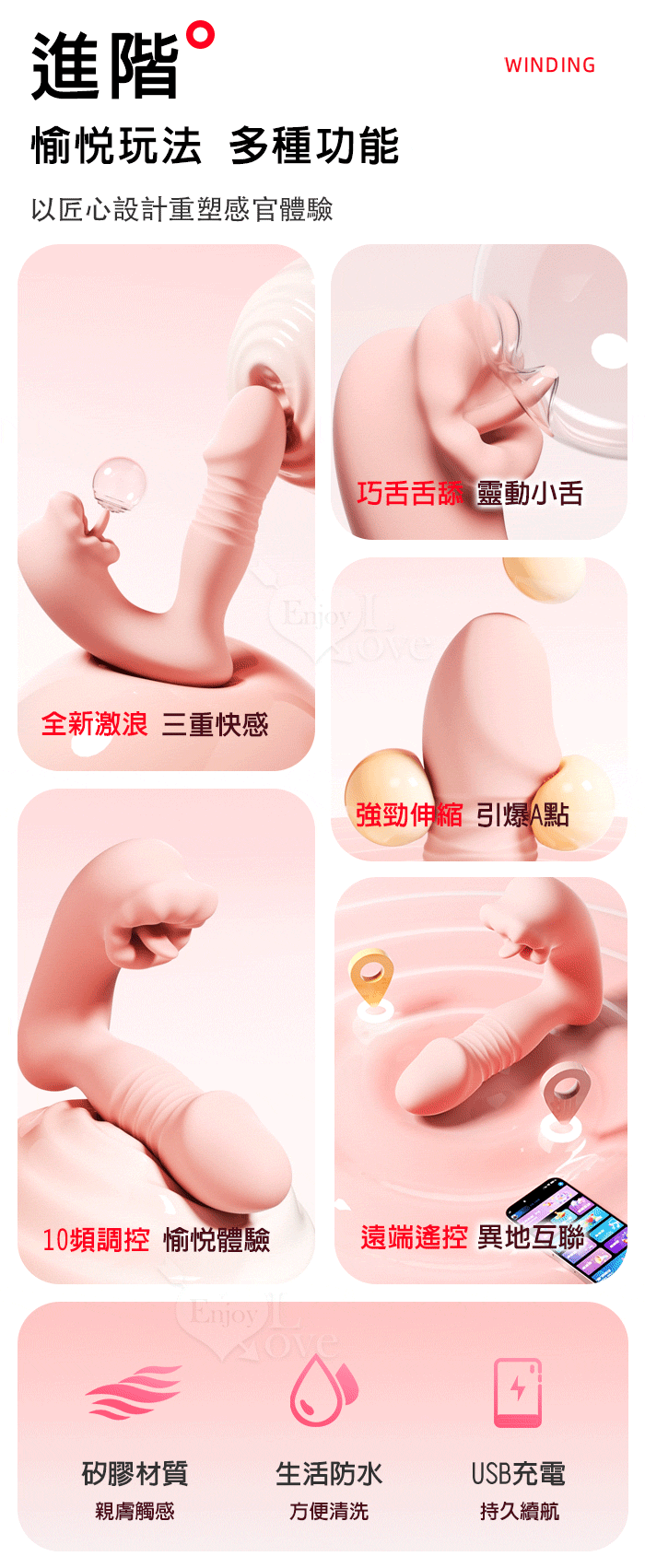 ROSELEX 上舔下頂 入體伸縮舔震三合一 10頻雙馬達貼合穿戴按摩器 - 可手機APP遙控﹝具兩種操控模式﹞粉
