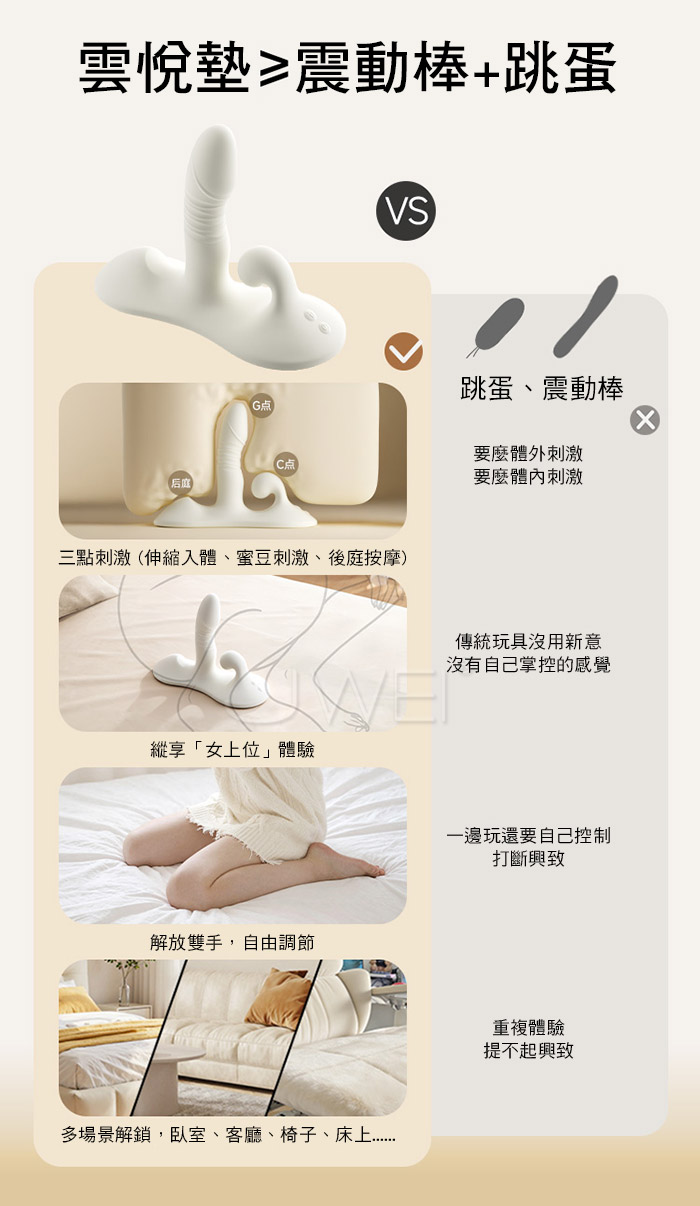雲悅墊.9段變頻激顫伸縮衝撞 無線遙控坐騎式吸盤按摩墊