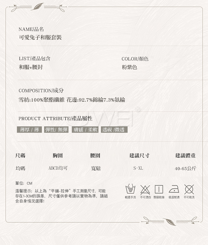(如為商品本身暇疵,接受七日內換貨,請勿試穿,謝謝您)