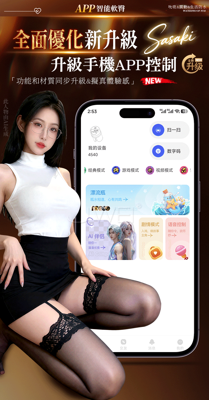手機APP異地控制,語音操控美臀互動,隨你指揮&視/聽/觸擬真感強