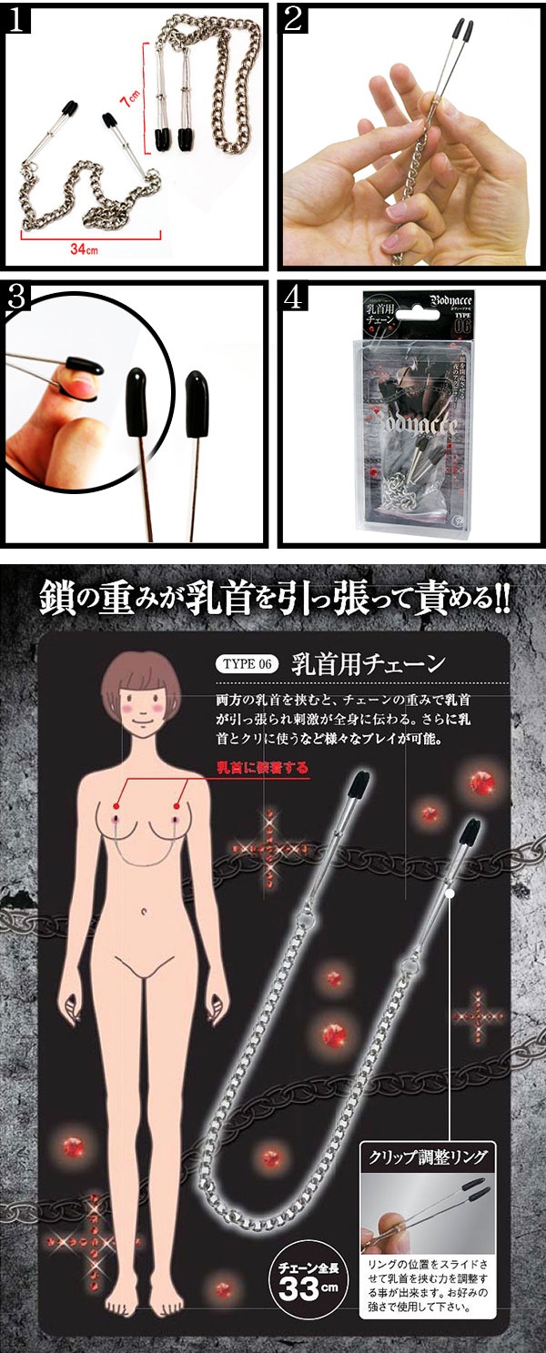 ►您現在的位置:首頁>日本A-ONE*Bodnacce SM系列-Type06 掛鍊長型乳夾