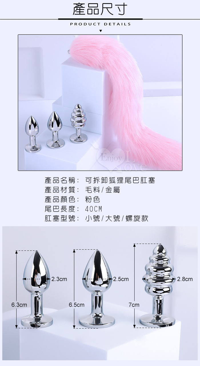 ►您現在的位置:首頁>激性扮演狐狸精 ‧ 3款不銹鋼後庭肛塞+純粉尾巴毛套裝組﹝可組裝拆卸﹞