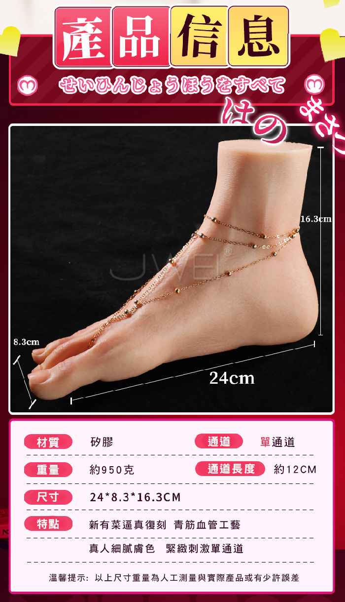 1:1尺寸還原,950g美足 肉感厚實,回彈有力,慾望釋放~
