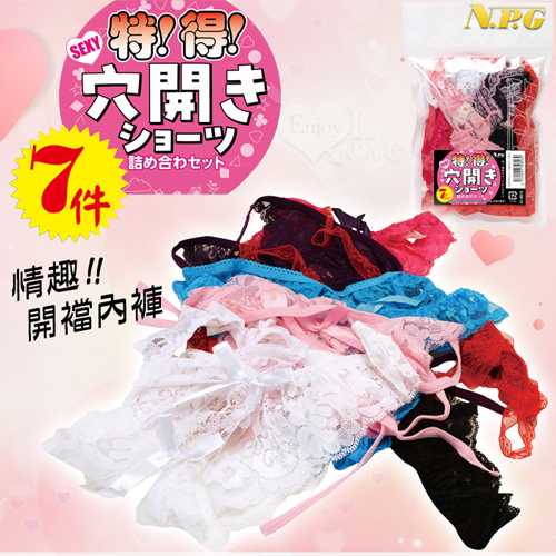 ►您現在的位置:首頁>日本NPG.特價!超值!穴開きショーツ 7件套情趣開襠式內褲﹝不重覆/自用‧派對‧贈品兩相宜﹞