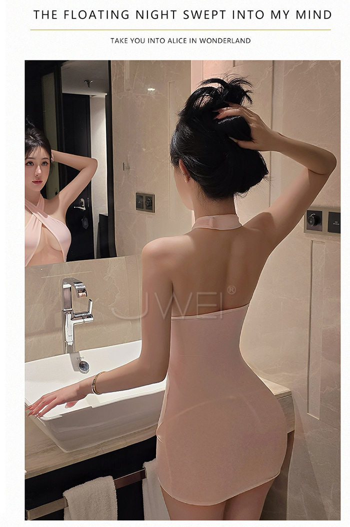 | 夜色小秘.性感秘書誘惑嫵媚交叉露胸美背約會戰袍【粉色】