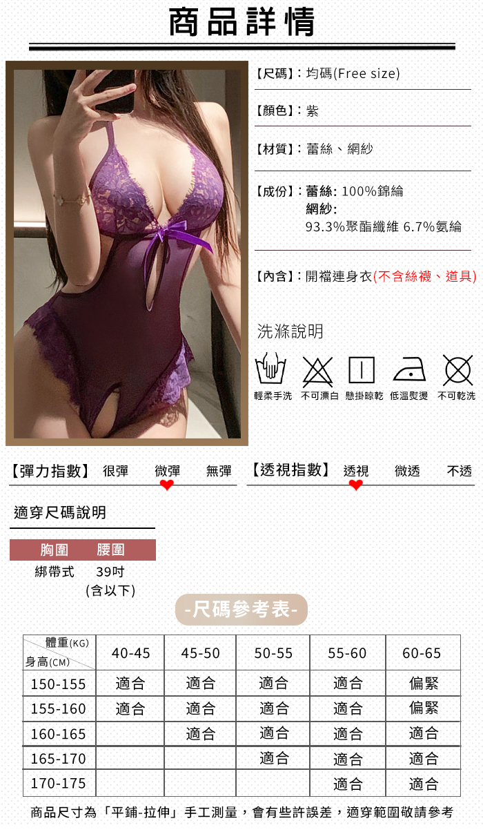 | 蕾絲綁脖透紗裸背連身衣|免脫開襠超誘惑﹝紫﹞