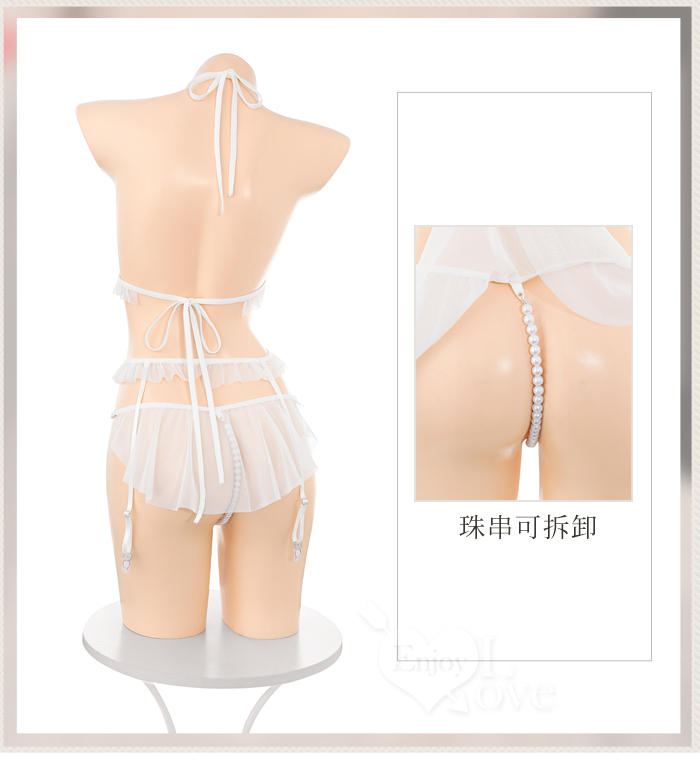 ►您現在的位置:首頁>「法式透紗」蕾絲比基尼 × 花邊吊襪帶 × 串珠丁字褲 夢幻四件式套裝