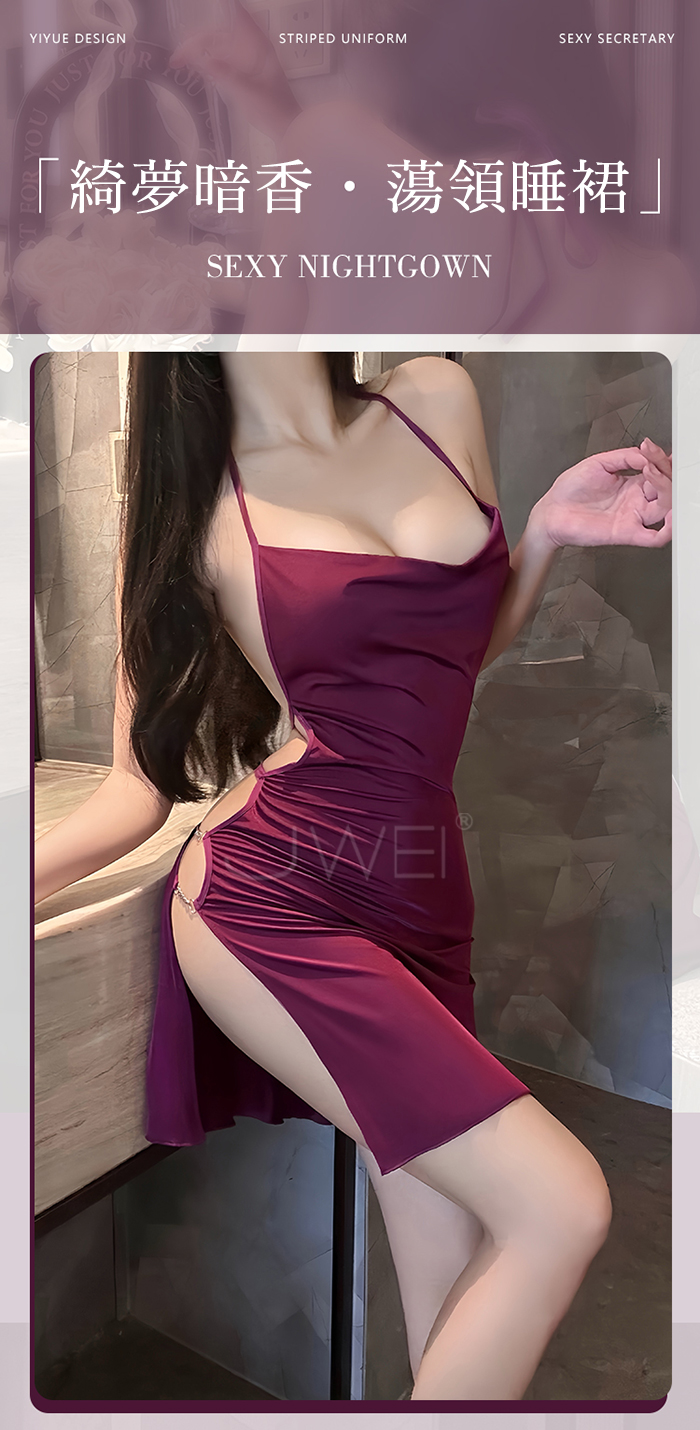 ►您現在的位置:首頁>綺夢暗香.優雅蕩領美背綴腰掛脖後繫帶睡裙【紫棠色】